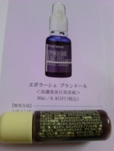 今回株式会社トリプルサンファンサイトよりエポラーシェのブライトアップ美容液アイテム『ブランドール』ミニサイズをお試しさせてもらいましたr />まず驚くのが、色こげ茶ですえ?大丈夫なの?でも、のばすと、透明に変わりますくすみ乾燥に効くというので使ってみましたが、しっとり潤う感がありましたが、ミニサイズなのでちょっと物足りなかったですね使っていくうちに、シミもなくなるんでしょうね株式会社トリプルサン ファンサイトファンサイト参加中 続きを見る ['close']