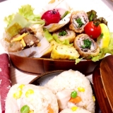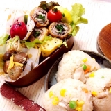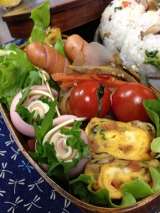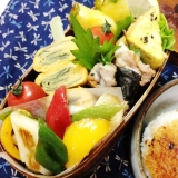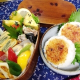 ***ご訪問ありがとうございます***焼きおにぎり三つ葉入りたまごやき醤油麹の豚肉の大葉海苔巻きさつま芋ピーマンパプリカながネギ味噌炒めきんぴらごぼうパイン&レモン&ミニトマト味噌と砂糖を半々で混ぜて雑穀入りごはんにぬりゴマ油をしいてフライパンで焼きましたゆうべのうちに味噌をつけたおにぎりは握っておき朝は焼くだけにしましたよ昨日は帰るなり長男がジュースをガーッと一気飲み^^;甘い物をお弁当のパインしか食べてないから甘い物が欲しいということらしいです甘味に対する執着心は女子なみ^^;?で、今日のたまご焼きは砂糖のみにしてみました(笑) 続きを見る