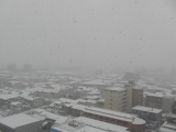 初雪です ちょっと興奮っ 駐車場のアスファルトが見えないくらい積もってきた 雪国のお友達が見たら 笑っちゃうね♪たったこれだけの雪で大騒