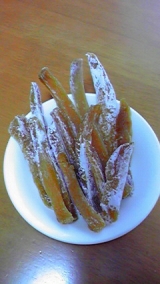 報告が遅くなりましたがおいもやさんの干し芋子供と一緒に先日頂きました http//moniplajp/bl_rd/iid16156675950ebc5818aa6b/m50f7a3131c4bc/k1/s0/ こんな感じで袋に入って届きました 中身を全部出すとこんな感じで全部で大小合わせて役15本弱くらい入っていました オーブントースターで焼いてみました こんがり焼けて半生で食べるより柔らかくて甘みも出てとっても美味しかったです 息子も一口食べたらもう一本とせがまれとても気に入ったらしくおいもやさんの袋を見つけると食べたいと袋を持ってきてせがまれます スーパーなどで売っている干し芋と違ってスティック状になっているので子供でも食べやすいし焼いて食べる時まとめて何本も焼けるので干し芋大好きな私としては嬉しかったです また他の干し芋と違ってそのまま食べても甘みがあり、半生なのに癖もなくお芋本来の甘さと旨味が味わえてまた来年出たら是非買って食べたいなと思いました 干し芋を使ったレシピも考えたのですが本数が足りず作る前になくなってしまったので結局実家に持って行き残りの干し芋は母と息子と3人で美味しく頂きました ちなみに私の考えたレシピはアップルパイの中に食感が残るくらいの大きさ(1㎝くらい)に干し芋をカットして入れて焼いても美味しいのではないかなと思いました 今度自分で買って作ってみたいなと思っています 続きを見る ['close']