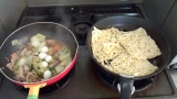 2.焼きそばの麺を フライパンにごま油を ひいて