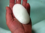 牛乳石鹸 赤箱125 を試しています…