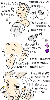 欲しいなーって前々から思っていたピアスロック! 株式会社クリスメラ様のご好意で、このピアスロックをお試しさせて頂きました いやあ、これは素晴らしいです!! イラストの通り、後ろのツマミを引かないとピアス固定状態が解除されません 特に細い径のピアスって、ちょっとしたことでポロポロ落ちてしまいます 上着を脱いだら、ポロ! 髪をといたら、ポロ! ピアスしたまま入浴なんてとんでもない! 絶対無くなっちゃう!! ダイヤのピアスとか大事なピアスだと、頻繁に着用するほど紛失リスクUP! 沢山使って減価償却したいのに という方に特にお勧め!!!! ぐいぐい引っ張っても取れませんよ 耳たぶ千切れそう! でもピアスロックは取れません なので、すっごく長い鎖状とか、大きいフープ状のピアスには使わないほうがいいかも ピアスの穴が裂ける事故につながる恐れがあるかもね… (スポーツ観戦時に隣の人が「バンザーイ!」して、フープに指が引っかかって、耳が裂けたって人を知ってます…こわあ) ピアスに付属してきたピアスのキャッチ(耳の裏側で受け止める金具)はもう要らないや! ピアスロックがあれば、もう今後使うことは無いでしょう!断言! 06mm11mmまでのピアスポストに対応 1ペアあれば、ほぼすべてのスタッドタイプのピアスに利用できます しかも、アレルギーが起き難いといわれるサージカル(手術用)ステンレスで出来ています いいね! 価格もお手ごろだし、プレゼントにもいいと思います ピアス本体は個人のセンスや趣味があるけど、耳の裏側ならあまり見えないしね 続きを見る ['close']