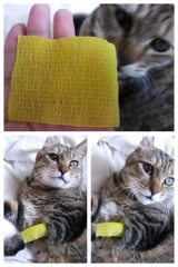 我が家のニャンズ達にもしもの時(怪我など)用にカラフルバンテージと、言う物を用意してみたよテープは指で切れなかったので適度な長さをハサミで切ってちゅうに巻き巻き試し着けーテープの香りは気になったものの大人しく腕に巻かせてくれたよ動物の皮膚や毛にくっつかずにテープの素材同士がくっつくから巻くだけで留めることができるのだから、留め金や包帯が不要で手軽に圧迫固定が出来て関節の保護や固定ケガの予防に最適毛の長いペットがお腹ユルい時などにフサフサな尻尾をこのテープでまとめておくと尻尾が汚れにくくて便利かも肌にもつかないからはがす時に痛くないのも魅力的伸縮性もあるから指の曲げ伸ばしもしやすかったよニャンズ達とオモチャで一緒に遊んでるとしょっ中、ニャンズの爪で指とか手を怪我して絆創膏のお世話になるんだけど絆創膏の上から剥がれ防止にテーピングとしても使えそう今回は、3種類の大きさの内1番小さいサイズをGET大、中、小の全種類あってもなにかと使えて便利かもテープの詳細は下にまとめたので気になった方は、覗いてみて下さいなソルブのオンラインショップファンサイト参加中 続きを見る