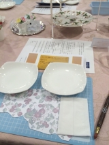 先日少しだけご紹介させていただいた、ルノーブルのポーセラーツ体験→憧れの♡ やっと引き取りに行ってきました出来上がりはこんな感じになりましたよこちらのテーブルウェアは、梅田の富国生命ビル地下にあるルノーブルさんで作りました「ルノーブル(Lenoble)」は商社直営の輸入ブランド洋食器専門店ウェッジウッドやバカラ等の各種ブランド洋陶器アイテムが常時在庫30万点以上!体験した店内の場所近くにはピンクのバラのヘレンドやリーデルのグラスなどが沢山並んでいました実はルノーブル、京都四条にも店舗があるので何度か足を運んだことがあります元職場の同期がカップ&ソーサーをコレクションしていて一緒に見に行ったりしていました本社は長岡京なので、体験教室は長岡京であることが多かったんですよね今回梅田の富国生命ビル地下にあるルノーブルさんでの体験教室は今回が初だったそうなので参加できて嬉しい限り!「 ポーセラーツ 」とは、“porcelain(磁器)”と“art(芸術)”を組み合わせた造語で、最近注目されているホビーの一種ブログをはじめてから、たくさんの方が記事にされているのを見て私もやってみたいなぁとずっと憧れてました難しいのではと思っていたんですが思っていたより簡単で不器用な私でもなんとか出来ましたよ今回は白磁のお皿2枚に、苺柄の転写シートを切り貼りし好みの柄にしていきます!イギリスの名窯ウェッジウッドを代表するシリーズ「ワイルドストロベリー」も、このグォーグ社の転写紙を使用しているんだって!実は、柄はもう決まっていて張り付けるだけかと思っていたんですがこの転写シートを各自自由な形に切り取って配置していくんです!なるほど、だから世界に1つだけの自分だけのテーブルウェアが作れるということなんですねしかし、ここれはセンスの問われる作業←まったくセンスのない私です最初に先生が「こんな感じに切ればいいですよ」と丁寧に説明してくれますこのように、不自然にならないように枝の部分などで切っていきます苺の部分だけを切ったり、葉っぱだけを切ったり、もっとワイルドに大きく切ってもOK!これがけっこう難しかったー!切り離した転写シートは一旦水に浸します水に浸すとくるんと丸まり1,2分もするとこのように、するっと下の白いシートが取れますこれを白磁のお皿の、好きな部分に配置このままだとまだ指で簡単に動いてしまうので、もう一手間テッシュで水分を少しふき取り、先端がゴム状になったヘラのような専用道具でシートとお皿の間にある空気と水分を押し出していきますこれも油断するとシートがよれたりするんですが、そんな時も先生が修正してくれるので安心色々悩みながら自分の好みの柄に裏には葉っぱを配置してみました苺を切り取って張り付ける方などもいらっしゃいましたよー!せっかくなので名前も!今回6名での体験だったのですが、みなさん柄はそれぞれで個性が光りますお隣の方の作品シートを大きめにカットし、お皿の半分に集中的に配置これ、やればやるほどたくさん載せたくなっちゃうんですお皿の中央あたりに苺部分だけを切り取って配置されていたり、カットの仕方で組み合わせは無限大!他の方の作品を見るのも楽しいですねこうやってみると、私のは柄が少なめでさみしく感じたのでもっとモリモリ貼ればよかった!と勉強にもなります最後は紅茶とお菓子をいただきながら質問タイムまで設けてくれましたポーセラーツに関すること、今回の体験に関すること、なんでも聞けたので有難かったです!ほんとに初歩的な質問でも笑顔で丁寧に答えてくださり、素敵な先生でしたまた体験しに行きたいですー!ルノーブルのHPは→こちら ルノーブルのイベント情報は→こちらブランド洋食器専門店 ルノーブルファンサイト参加中 続きを見る ['close']