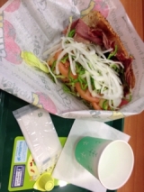 サブウェイ大好きな弟と私で昼食を買ってきましたー\(^o^)/いつも持ち帰りですね野菜嫌いな弟でも、オリーブやピクルスを抜いてもらってターキーブレストを美味しそうに食べていました?そして私は一番人気のエ続きを読む >> 続きを見る ['close']