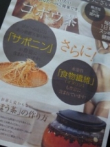 0240032012568200079jpg"> モニプラさんでモニターしてみた、ごぼう茶 ごぼうの皮にはサポニンが豊富に含まれているようで 抗酸化作用⇒エイジングケア 脂肪吸収を抑える⇒ダイエット効果が期待できるらしい ごぼうの皮がお茶になる 想像が付かんかったけど、こんな感じ 焙煎された香ばしい良い香りがしましたよ 飲み方は、5gていどを1Lのお湯で煮出すか 急須に200ccのお湯入れて待つ事2分 初めてのごぼう茶、1Lは何となく何となく 勇気が要ったので、200ccでお試し 我が家には急須という物がないもんで ダイレクトにカップに入れてみましたわ ちゃんと沈むんで、これでOKかな 飲んだら、あごぼうの味! そのまんま、ごぼうの味でした 出がらしは、お料理に使えるそうなんで 次回は煮物に入れてみようか(今回は捨てちまったけど) cKirei@コラーゲンキレイファンサイト参加中 続きを見る