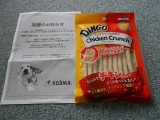 先日、モニプラさんでまた当選しモニター商品が「ペットの専門店コジマ通信販売」さんより届きました商品は 「 ディンゴ チキンクランチ 」牛皮を細かいチップ状にしてササミとミックス、それらを圧縮して固めたのが、ワンちゃんのための棒状ガム「チキンクランチ」です細かい牛皮チップによるブラッシング機能により、歯垢を落とす効果もあるそうです製造は農林水産省認定工場と、安心して与えられるのもうれしいですねわたちも食べれるでしゅか 早速、ワンコたちにあげてみましたこうちゃんは上手に前足で持ってカジカジとっても美味しそうに夢中で食べていましたよ レナちゃんはこの手のガムは苦手なようで食べてくれませんでした でも、こうちゃんが気に入ったようで喜んで食べてくれて良かったですよく噛むことで歯の汚れや歯垢を落とすので歯磨き効果も期待できますねコジマ通信販売ファンコミュニティーファンサイト参加中コジマ通信販売オンライン 続きを見る