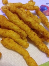 スナック菓子の中で一番好きなスコーン一番好きなのはチーズ味だけど、お店で『スコーン』の文字を見ると、とりあえず目にとまる癖が笑そんなスコーン、なななんと!ウコンパウダー配合の『ウコーン』登場!!モニプラさんで、コイケヤさんよりいただいたので、さっそく試してみましたスコーン信者の私はなんの迷いもなく、大喜びで食べようとしたけど、旦那さんは「なにそれほんとにおいしいの?」とずっと怪しんでいましたでもウコンパウダー配合、というだけで、味はタンドリーチキンとのことそのことを伝えて、夕食後にいただいてみました袋を開けた瞬間、カレーの香り♪そして、なんだかいつも食べるスコーンより、一本が長いような一口食べて「カレーの味!!」ボリボリボリ「なんかちょっとピリピリする!!」ごっくん「?どこか苦い?」しかし次の瞬間「やめられない!!」というわけで、辛みと後味に多少の苦みは感じるものの、タンドリーチキン味がとてもおいしくて、やみつきになりますあーだこーだ言ってた旦那さんのほうがたくさん食べました私はウコンドリンクを飲まないのですが、旦那さんは「この苦みがウコンの味!」とか言って、冷蔵庫にあったウコンドリンクを見に行き、「クルクミン30mg配合」という表記を確認ウコーンとまったく同じなるほど、ドリンク1本分がこのウコーンの中につまっているのね最終的にはビールのおつまみになっていました大人のおつまみにもぴったりだけど、辛さが大丈夫なら十分おやつにもなると思いますごちそうさまでした湖池屋&フレンテモニプラファンサイトファンサイト参加中株式会社湖池屋 続きを見る ['close']