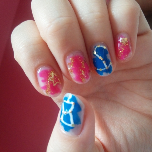 シールとラメやホロで星をイメージしました流行の塗りかけネイルと合わせました