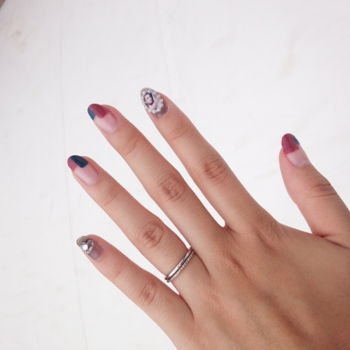アートする方もたくさんいるとは思いますが、シールを使ってる方も多いと思いますしかし、ただシールを貼るだけだと毎回同じようなネイルになってしまうような気が…そこでシールを使っているのに「こんなネイルデザイン見たことない!」「本当にシールなの?!」というようなシールを活用した、シールをアレンジしたネイルデザイン募集!というテーマが良いと思いますちなみに画像のネイルではオードリーヘップバーンのシールの周りにパールを付けているのと、指輪のシールのストーン部分にスワロフスキーを付けていますよろしくお願いします 続きを見る