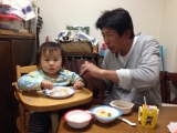なんか静かだなぁーっと思ってたら、机の上から自分でとって食べてました!いやービックリ!!こんなにバクバク1人で食べてたの初めて!!