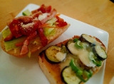 ピーマンとなすのみそマヨタルティーヌ サラダタルティーヌ みそマヨのほうはパンにみそとマヨネーズを混ぜたものを塗ってピーマンと茄子を交互に並べて最後にチーズをかけて焼きますサラダのほうはパンを焼いてレタスときゅうりとトマト、炒めたベーコンをのせて粉チーズをかけます 最近、食欲ダウン中 夏バテやね おなかはすくけど、見たら食べたいて思えんし、食べたらすぐおなかいっぱいになる おなかす 続きを見る ['close']