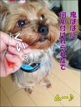 パピィムダ吠えを 超音波&振動で解消! 「ブルソニック」に 応募したらば 当りました (σ≧▽≦)σ やった! いやん ここんとこ ツイてる?あたし宝くじ買うべき? <ブルソニック>とは これですっ! これね 犬の首に装着して 無駄吠えを やめさせる首輪なんですの ほれ こんな風に ※ 画像お借りしてます うちの犬達ね 普段は あんまり吠えないんだけど インターホンが鳴った時と 家族の誰かが 帰宅した時に わんこら わんこら 吠えるんです (-"-;) うるせー!! 特に ピンポン鳴ると 3匹一斉に 吠えるんで インターホンの相手の声 全く聞こえへんねん 画像モニターで 映る姿で 宅急便の人とか 向井理くんなら わかるけど(来んやろ向井君は) 新聞の集金のおっさんなんか え? 誰?人相悪いやん 押し売り? とかなって びびるねん (新聞屋さんに謝れ!) 犬にしてみりゃ 「誰か来たでー」 って 教えてくれてるでしょうが (;一_一) それは インターホンのお仕事ですからね(笑) それに 犬娘ムー♪は 闘病中の為 吠えると体力消耗しちゃうんで 出来るだけ 吠えてほしくない(のに一番吠える)んで 是非 ムーに 使ってみるわ! ちゅうことで 届いた箱は こんな感じ では さっそく ムーに 付けてみます めっちゃ 軽いよ ただ 全犬種対応なんで ヨーキーには ヒモが 長すぎると思うなぁ モードは 3パターン 切り替えが 可能で 超音波のみ 振動のみ 超音波+振動 という風に 選べます んじゃ せっかくなんで 超音波と振動両方で いっとこ 写真の エビが手に持ってる オレンジ色のが スイッチで 装着したまま 操作出来るから 便利です では 長男に インターホン役を お願いしまして 「なー あんた ちょっと ピンポン押してきて!」 (-"-怒) 何回 鳴らすねん うるさいわ 息子!! と 同時に 犬も めっちゃ うるさいわ!!(笑) 火がついたように 鳴く まっちゃんとジローラモ (;一_一) ところが <ブルソニック>装着のムーは!! 一瞬 ハッ!! と しましたが Σ( ̄ロ ̄lll) ほ ほ 吠えへんっ!! え 嘘 マジでーーーっ?? ただ 顔は かなり とまどった表情ですけど (笑) ( ̄ー ̄; いつもなら 誰より 甲高い声で ギャン鳴きするムーが チラっと 声出しただけで その後 何度やってみても 全く 吠えませんでした めっちゃ おりこうやーーーん!! 家族中 狂喜乱舞 (笑) ほんとは ここで 御褒美の おやつあげたいけど 今 ムーは 食事療法中なので <おりこう> コールで ほめちきりっ!! いやぁ ムーの強情な性格上 こういうの 絶対 効かんと思いこんでたんですが 効き目 あったわ!! マジで びっくり! ただ 残り 2匹の犬が うるさいわ(爆) あと2個 送ってくれはれへんやろか?ペピィさん ( ̄ー ̄; (どあつかましいわ!) まぁ 根気良く 一匹づつ 順番に トレーニングを 続けてみようと思います ペット用品通販 ペピイファンサイト参加中 続きを見る ['close']