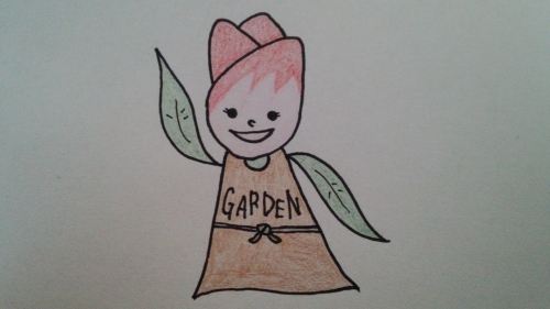 色鉛筆仕上げです私の勝手なイメージで、庭=チューリップだったのでチューリップちゃんがガーデニングするイメージです