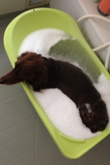 せっかくのBdaがあるんだから、 わんこにも贅沢炭酸浴 わんこ浴槽も新調した(笑) 我が家は基本、シャンプー剤は使わない 時々、酵素剤を入れるだけ〜 炭酸のしゅわしゅわはそんなに感じない デリケートな人なら顔を洗った時に唇にちょっとピリピリ感じる程度 だから、わんこにも優しい あまりに気持ちいいもんだから はぁ〜ビバノン、ノン♪ 気持ちよか〜 なんてね ひっくり返したら固まって そのところをパチリ(笑) 母さん、無茶するねぇ Bdaの水圧が低くて物足りないって 書いてる人もいるけど まあ、高層マンションだったり団地だったり一戸建てだったりで差はあると思うけど 我が家では今までと大差なく、気持ちよく使ってます 新スタイル炭酸浴Bda(ビーダ)ファンサイト参加中 続きを見る ['close']