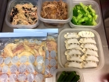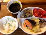 最近のつくりおきおかず達ザザッと">左から時計回りにカボチャの塩煮夏野菜の南蛮漬けオレンジゼリースペアリブ煮込み人参ツナ煮夏野菜の揚げ浸し 左から時計回りに春雨サラダ牛丼ゆでブロッコリー餃子ゆでオクラ鶏肉の味噌マヨ漬け(下味冷凍)この日はこれに豆腐ハンバーグのタネだけ作って力尽きました 今回下味冷凍に初挑戦してみました参考にしたのはゆーままさんのレシピ→来週にでも作ってみようと検討中です♪ この時期は食中毒に気をつけて3日くらいで食べきりを心掛けて作っています常備菜が1品でもあると本当に楽ちんなので、常備菜生活やめられません 食事記事ついでにおハルたんの幼児食も少しごはん鮭とジャガイモきのこの塩バター煮トマト春雨サラダ中華スープ 餃子一口おにぎりヒジキ煮味噌汁 餃子は大蒜とにら抜きで作成我が家はたれにつけて餃子食べるので、餃子自体には味はほんの少ししかつけてません 鮭の塩バター煮はめっちゃ簡単で、鮭焼いて水とバターと塩入れてコトコトで完成鮭をタラに変えてもいいし、鶏肉に変えてもいいし応用ききそうな感じ おハルたんもお気に召したようでバクバク完食この翌日にクリーム煮にリメイクしました 食いしん坊おハルたん、この何日か夏風邪からの夏バテクールに入ってしまい、ほとんどご飯食べてくれません食べるけどいつもの半分以下くらい大好きだったバナナもいらないという始末いつも食べてただけに心配でしょうがないです早くいつも通りパクパクおいしーと言ってご飯食べるおハルたんに戻って欲しいな 続きを見る ['close']