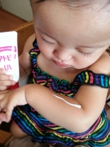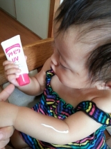 我が家の娘チャン親の都合ながら毎日チャリにのせられ炎天下だろうが保育園への通園で本来は結構白かったのがこんがり美味しそうな色へ(∵)チャリ2,3分だからって何にも塗らないと子供の肌はすぐ焼けますねヽ(´o`;今更ですが遅いUV対策に赤ちゃんの肌にも優しいアトピタの日焼けどめクリーム使った感じサラっとしててむっちゃ塗りやすい!!保湿UVクリームと書いてあるだけにハンドクリーム塗ってる感じでしっとり保湿される感じがするのには驚きでした~無香料で日焼けどめ特有のあの匂いもなく良かったからおすすめ(∀)仕事柄食品扱うので特有の匂いと水おも弾く日焼けどめは匂いうつりが怖くて今年は日焼けどめ一切使ってなく自分も焼けて黒くなってたので子供と一緒にケアできて一石二鳥でラッキー♡Android携帯からの投稿