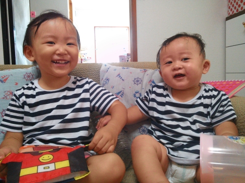 お互いおそろいのものを着ると楽しくなっちゃうね♪ ずっと仲良しの姉弟でいてね♪