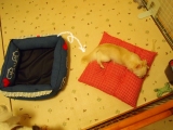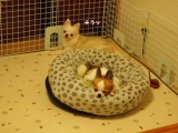 先日、ベッドの使い方がおかしかった3匹でしたが、、、ミーシャがちゃんと、ベッドで寛いでるなって思ったら、なんか、やっぱし、使い方間違ってるよねロッタのおちりが、目の前に来たから、お顔をそらすミーシャ(^^;)その後、中敷きのクッションの方へ移動えカメラ目線で堂々と言われても( _)ロッタは偉業を成し遂げた!!みたいな顔してるしプロレスしてたら、分解しちゃっただけでしょっ( ̄∇ ̄)このベッド、必ずクッションが外されてしまいますこの子たちには一体化ベッドじゃないと無理みたいですね(>_ 続きを見る ['close']
