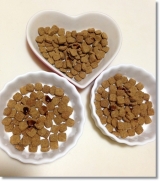 先日当選した、爽快ドラッグさんのファーストチョイス 体重5kg以下 「高齢犬」600gをただ今、3チー一緒にお試し中です♪ ファーストチョイスの特徴は体重5kg以下の食べる量が少ない小型犬に栄養を凝縮第1主原料は鶏肉副産物(頭腸足)を含まない、厳選された鶏肉をたっぷりと使用分岐鎖アミノ酸(BCAA)配合便臭を抑える天然成分ユッカ抽出エキス配合小型犬が食べやすい小粒タイプ合成着色料合成香料無添加こちらが届いてからすぐに与えていたフードが切れたので、3チー一緒にお試ししてみました♪茶色い液体は、モニプラさんで当選しお試し中の姫タケサプリメントです(^o^)みんな真剣にマテをしています!こういう時だけはしっかり、完璧なカメラ目線です(笑)よし!の掛け声で、みんな一斉にかぶりつき!くりんなんて、勢い余ってフードを飛ばしちゃってます(笑)初めてのフードは食いつきなどの反応が気になりますが、みんな全然平気でガツガツいってますo(〃^▽^〃)o粒の大きさは1㎝角ほどの「小粒」ですが、今までのフードは「超小粒」タイプをあげていたので、食べやすさはどうかなぁ?と、様子をみてみましたが、今までより大きいから食べにくいという感じはなく、カリカリよく噛むので、その分前より時間もかかって、あまり小さすぎるよりいいかも?!と思いました!爽快ドラッグ ファンサイトファンサイト参加中ファーストチョイスの通販はこちら 続きを見る ['close']