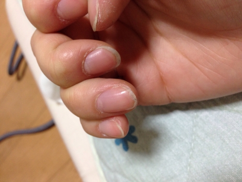 くすりゆびが2枚爪になってしまっています今はハンドクリームを塗り込んだりしていますが寒さが厳しくなるともっと割れやすくなります