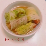 P&G「ボールド濃密コンパクト」サンプル【100コ入り】を30名様に ←参加中凄く簡単です(´ω`)用意するのは白菜ウィンナー水コンソメ白菜は一度下茹でしますそうすることで白くて硬いとこも柔らかくなり簡単に巻けるようになります(´ω`)茹で汁は最利用しますのでお塩はいれないでくださいね!!茹で汁は3分の1だけ残してくださいね残りは捨ててもおkウィンナーに巻きます(笑)巻いたら巻き終わりを下にして茹で汁が残ってるお鍋に敷きます弱火にしてコンソメいれて煮込むだけ!あとは塩コショウで調整してください白菜とウィンナーがコンソメを吸ってくれてとても美味しいです\(^ω^)/熱々でお召し上がりくださいww残ったコンソメスープは捨てずに次の日にリゾットやスープに使えますよ(゚∀゚)!!いくらさんのお料理をもっと見るボールドの通販はこちら爽快ドラッグ 続きを見る ['close']