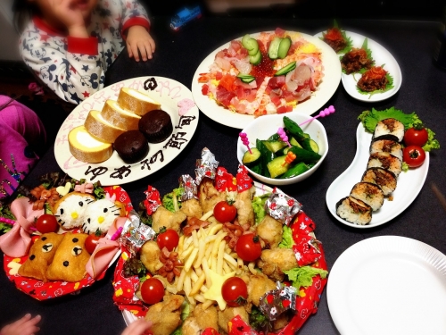 子供が大好きなキティーやリラックマ、ハムでリボンやウィンナーをお花に飾り付けしてみました
