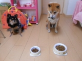 以前、ワンコ用のフード入れのモニターに応募してるって 記事を書いたんだけど(その時の記事はこちら ) なんと!!!!!!当選したのです♪ ↓モニプラというサイトでモニター応募してました✩ こちらです✩↓↓ ペット用品通販 ペピイファンサイト参加中 今回、モニターさせていただくのは (というか、モニター体験自体が初めてのことなので、ドキドキです♪) ペピイ真ん中には棒の付いたユニークな食器『パブロフボウル』 ペピイって、動物飼ってる人には有名ですよね 動物病院に通販の冊子が置いてある、あのペピーさんです 獣医師さん監修のペット用品通販サイトですよね そんなペピイさんから、モニター品の『パブロフボウル』が届きました♪ ペピイさん、ほんとありがとうございます! ↓『パブロフボウル』はこちらです! 柴♥チワ日記 私、ちょっと勘違いしてて もっと小さい容器なのかな?っと思ってたら、実物が意外と大きい! でも、パッケージのラブちゃんの大きさみたら、大きいってことが分かるよね^^: 私、勝手に小さい容器だと思ってたので、 届いた時、「うわっ!すごいなんか本格的!」が第一印象でした 最初、キラくんに使ってみようと目論んでたんだけど、 チワワには大きいかな?と思い、まずは柴犬の蘭くんで 挑戦!してみることに✩ ↓実物がこちら♪ 色は5種類あったんだけど、希望通り、レッドが届きました✩ このフード容器は、ちょっと変わった(斬新な?)デザインで 容器の中にある凹凸で、ワンコの早食いを防止したり、 棒がついてて、気分を変えてお食事♪みたいな商品だそうです モニター募集を発見した時、うちのワンズがどんな反応するんだろ!? ってすごく興味があったのです でね、届いて初めて知ったんだけど、 笛が付いてました犬笛だよね!? ↓ パッケージの説明のイラストでは、ご飯の時に これを吹いて、ご飯の時間だ!とワンコを呼び寄せるってことなんだろうけど あれだよね、ワンちゃん飼い始めた時とかに、こういうのを使うと 笛=ご飯みたいなのを覚えるんだろうね しかし、我が家は蘭くんが8歳、キラくん7歳と、 ご飯の時間なんていうのは、私の行動ですぐにバレてしまうので、 (フード置き場に移動したり、容器持っただけでご飯ってバレバレだし('∀`)) 我が家では活用する場がないのかな?と思ってたんだけど 私!ちょっと全然違う方法で、この笛を活用するいい案を思いついたのです(笑) 食事とは全く関係ないので、それについてはまた後程 ↓箱から出したと同時に、キラくんが興味津々で近づいてきました やっぱり、棒が気になるみたいで、 鼻でチョンチョン、クンクンと「なんだこれ!?」状態 キラには大きいだろうなって思ってて、蘭くんで試そうと思ってたけど、 箱から出しただけでこの食いつきよう 大きさ関係なく、やはりこの棒のついた斬新なデザインに興味津々のよう 柴♥チワ日記 うちがいつも使ってるフード入れは、リラックマのこのタイプ 左がキラくん、右が蘭丸くんのお揃いです 我が家のご飯は、蘭くんが肝臓が悪いので、 犬用食事療法食(ロイヤルカナンの肝臓サポート)オンリーです キラは、肝臓は悪くないけど、毎日のてんかんの薬が 肝臓に負担掛かるというのを考えて、特に必要ではないけど 肝臓サポートを与えています (病院の先生も、問題はないけど、療法食は普通のフードに 比べて高いから、負担にならないのならドウゾって言ってくれてるので) あと、フードの酸化もあるので、2匹一緒の銘柄で早く 回転させたほうがいいかな?ってことで なので、毎日毎日、ずっと同じフードばかりなので やっぱり飽きてきたり、ムラがあるんだよね だから、こういうフード入れで気分転換っていうのは うちの子達にはドンピシャリ♪だったのですヨ 普段はこうやって、一緒に出してフードを与えるんだけど 蘭くんはペロっと食べたけど、キラが飽きて なかなか食べなくて、ゆっくりとか 同じフードなのに、お互い、相手が食べてるフードが おいしそうに見えて、取り合ったりとか(笑) この日も、蘭くんがご飯食べきって、 自分の分しかないと諦めたので、しぶしぶ食べ始めたキラくん 一応、完食にはなるものの ほんと、いつになったら食べるの!?っていう時や フードを容器から1つずつ出して遊んでみたりとか こういうのが、普段の我が家の食事の光景です ではでは、『パブロフボウル』を使ってみます! わっくわく(∩∀∩)ワクワク♪ 蘭くんのフードを入れて、準備完了♪ 食べる前に〝待て”させてるんだけど、 蘭くんも初めての容器に興味津々の様子✩ はいっ、もう食べていいよ!ってOKを出すと 蘭くんも早速食いついて行ったけど、横にいたキラくんも 「ん?なんか蘭兄ちゃんだけ、ズルイ!」と 寄ってきました(笑) やっぱりこの容器のデザインが斬新で、 興味津々なのかもよ!? 蘭くんは、キラには弱いので、放っておくと キラにご飯を横取りされたりするんだけど、 この日は「盗られてなるものか!!」と真面目に(?) 自分のご飯を