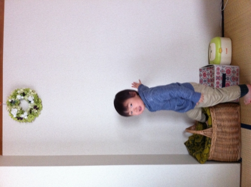 和室にオムツや使わなくなったおもちゃを入れるBOXを置いていましたが、オムツは麻のかごに変え、不要なおもちゃは処分し、春夏らしくすっきりさせました