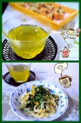 日本きらりさんの商品モニターに当選させていただき大変嬉しい気持ちで一杯です今回、何故応募したかと申しましたら今までは、お茶には余り興味なかったのですがお酒を禁酒する事に成功してからというもの、お茶は毎食後欠かせない存在になりお茶の美味しさにハマってしまいましたそれからは、スーパーやデパートや商店街に行ったらどうしてもお茶を、あれこれ品定めして見比べたり、テイスティングさせてもらったり、そして自宅でも、ネットでお茶を調べて飲む以外に活用できないかレシピを探したりして、お茶はマイブームの一つになったからなんですなので今回日本きらりさんの「京都利休園「知覧新茶」100g」を試飲したくって楽しみにしてたのでとっても嬉しくて仕方がありません本当にありがとうございました早速パッケージを開封しましたらとっても上品な爽やかな封に入った新茶が輝かしいです封を開けるととっても深い香りがして思わず ふふん(´∀`)と暫く嗅いで癒されてました緑鮮やかですうっとりします沸騰したお湯を新茶を入れた茶こしに注ぐと緑深い色から春から夏にかける新緑という言葉がふさわしい鮮やかな綺麗な色に変わっていきましたほろ苦さが後口をさっぱりさせてくれますこの暑い日でも 飲み終えたあとはスッキリしますね日本人に生まれてよかったと思いますねとっても濃厚な高級なお茶を飲んでる感じでお茶の好きな方にはたまらないと思います飲むだけではなく、残った「京都利休園「知覧新茶」100g」を使って和洋菓子を作りたいと思います「京都利休園「知覧新茶」100g」と豆腐とレーズンのカップケーキです子供がアレルギー体質のために極力簡単な材料で作りました砂糖もバターも玉子も一切使っておりません材料「京都利休園「知覧新茶」100g」 大さじ1薄力粉 100g豆腐 180gBP 小さじ1レーズン 70gガムシロップ 1個お茶にして残った出がらしの葉 適量材料を全て混ぜてカップに入れ上に出がらしの葉を飾りに乗せて170度のオーブンで20分焼いて出来上がりですレーズンの甘酸っぱさと新茶のほろ苦さがとっても合います冷たい新茶と新茶のケーキ渋めに作ると甘いケーキにもとっても合いますね新茶とガーリックオリーブオイルで絡めたパスタ新茶と頂きます大人のパスタランチです( ´艸`)ムププ又新しいお茶の出会いに新茶で( ^^)/▽▽\(^^ )乾杯ありがとうございましたm(_ _)m日本きらりファンサイト参加中 続きを見る ['close']