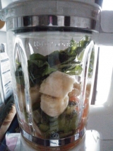 グリーンスムージー続いてます全部入れた写真 ここから一気にガーッと回します今日は水を100mlにしたのですが、もーーったりしていて飲みづらかった お