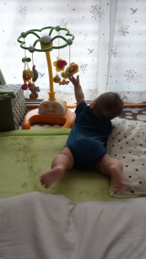 からっとしたいいお天気ですねかーやんが昼寝するときは、寝るか、本読むか、ためてるドラマ見るかとかなんですがbr>また図書館戦争読んでるからなかなかブログ書けないあーもう何回読んでも好きー(笑)ところで水ぶくれやったちくーびですが、見事に破れましたなかなかの激痛で、2回に1回しかがんばれませんしばらくミルクのみで耐えてくれー***さて3日前にかーやん無事5ヶ月になりましたついに5ヶ月離乳食とか、寝返りとか、まだまだ先やと思ってたのに!離乳食はなーいつ始めよう麦茶飲んだ日、夜中すげー起きたからちょっと休憩中たまに湯冷ましをスプーンであげてみたりいただきますごちそうさまはしっかり言って、美味しいねーとか話しかけながら食べてるんですが無反応普段はダラダラよだれ垂らしてるのに、食べ物持ってたら逆にかっすかす!よだれ垂らさずいつから始めるべきか迷います梅雨に入る前に始めたいなと思ってるんですけどね寝返りも全然で、手伝ってあげると楽しそうなんやけど、自分からは全然ねじらずでも寝返りするようになったら心配すぎるしなー寝返り防止クッションって、夜も使ってもいいんかなあ?全く動けないのって体に悪いの?かーやん貫禄が出てまいりました3ヶ月と4ヶ月の間に何が起こったんや!ってくらいの成長ぶりですね(笑)同じ服やけど長ズボンが半ズボンになってるもん(笑)5ヶ月ではもう写真におさまりきらない1日の過ごし方ですが、リズムが狂ったり整ったりの繰り返しで、全然決まってはいませんが5ヶ月のかーやんスケジュール7時 続きを見る ['close']