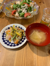 そして〜夕飯はdiv>ベビーホタテのカルパッチョ先に青じそドレッシングとオリーブオイルで混ぜ合わせて味を馴染ませちゃいますノリかけまくりの、、ちらし寿司w具はエビ、ホタテ、プッチンこっこ錦糸卵と海苔をかけまくったら具が見えません順番間違ったかな、、、w食べれればいいよね、、、私はビールも少しだけ飲みたかったので、少しだけお味噌汁はえのきと白菜 続きを見る ['close']