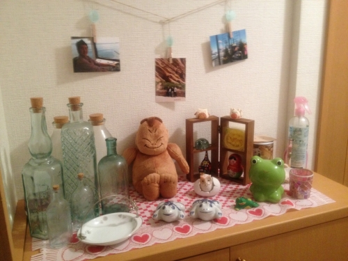 玄関の下駄箱の上です 自分のお気に入りのものを飾っています 単身赴任中の私をいつも見守ってくれています