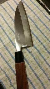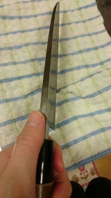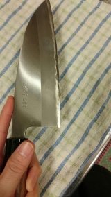 モニプラファンにて「堺の刃物屋さんこかじ」さんの素敵なイベントを発見してしまったので、記事を書かせてくださいなajp/blog/ucs/img/char/char3/027png" width="24" height="24" alt="照れ">我が家には包丁が4本ありまして・・・ステンレスの三徳包丁鋼の出刃包丁Wengerのパン切り包丁Wengerのスナックナイフこの中で、メインで使っているのは、ステンレスの三徳です7年前?かな?結婚して、さぁ包丁が要るぞ!!となった時に、イオンで買ったごく普通の包丁です錆びないし、軽いし、研げば切れるし、ナイスなタフガイ次に使うのは、我が家唯一の鋼の出刃包丁プレゼントで頂いたもので、柄がクルミの木!水に強いのか、丈夫なのか、痛むことなくとてもキレイですよー出刃だから、重くて最初は手首がくたくたになってました・・・ほら・・・出刃ってこんなに厚いんですでもこの強肩??のおかげで、父が釣ってきた大きな鯛も難なく捌けましたよーお手入れは砥石で研いでるけれど、あまり上手ではなく・・・切れ味はとても良くなる!けれど「これでいいの・・・??」と毎回研ぎ方をネットで調べてしまう小心者です没頭できて研ぎ自体は好きなのになぁ〜いや、ステンレスの三徳よりも鋼は硬くて砥石の上で滑ってしまうというか、研げないというか・・・安定させるの難しいんですー・・・言い訳ですよねーそんな残念な腕前の私が欲しいと思った堺の刃物は、安来鋼青紙万能包丁 翁流http//itemrakutencojp/sakaifukui/4941019051187/青鋼というのを使ってみたくってとてもよい素材なのと、これは見た目もとても美しいー!!つや消しっぽいの、珍しい!!キュウリくっつきにくそう!!笑ダマスカス万能包丁 左近白梅作http//itemrakutencojp/sakaifukui/9991483/ダマスカス・・・!憧れる!!すごく憧れるけど高くて買えないなぁダマスカスの包丁って、背の方がもこもこ凸凹してて刃が減って来た時の研ぎを心配してしまうんだけど、これはフラットで使いやすそう!!そして特徴的な模様がこれまた美しい・・・沢山の中から悩みに悩んで、持ってるところ、使ってるところを想像して選び抜いたこの2本は、甲乙付けられないくらいベストな包丁ですまるで買えるみたいで、選ぶの楽しかったこんな包丁が手元にあったら、毎日の料理が楽しくなるだろうなぁ堺の刃物屋さん こかじ (楽天市場)http//wwwrakutencojp/sakaifukui/【3名様に包丁プレゼント!】スパッと切れる包丁で料理を楽しく!【刃物屋こかじ】 ←参加中 続きを見る ['close']