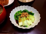 今日の夜ごはん彼のリクエストは、豚カツ!豚かつリクエストが多過ぎるっもずくとお豆腐のお味噌汁大根の中華風サラダちんげん菜のオイスターソース掛け写真に湯気が写り込みまくってます笑料理が冷めないようにごはん写真撮る時いつも必死!!笑盛り付けてっ、料理並べてっカシャカシャカシャ!頂きまーす!!て感じiPhoneの写真の音がしたら彼が寝室からダイニングへ飛んで来ます(笑)今日はこの写真撮ってる横で彼は豚カツのソース作りソースはいつも、すりゴマ、どろソース、とんかつソース、辛子、タルタルソース(orマヨネーズ)等を混ぜ混ぜしてます前々回、前回の記事に書いている通り今週は、九州野菜王国さんから頂いた野菜で冷蔵庫が豊富毎日おいしく使って頂いてます(^^)今日の出番は、ちんげん菜!新鮮(^^)芯の部分と葉の部分に切り分けて時間差で茹でます粗みじん切りのニンニクを油でカリカリにし茹で上げたちんげん菜の上に熱い油とニンニクをかけ、オイスターソースをかけただけ注意するのは、ちんげん菜を鍋からお皿へ直接、お箸などですくい上げて移すことザルで水切りしたりせずにこうすることで、お湯も多少混ざりオイスターソースが濃くなり過ぎず、良い感じになるみたい!クックパッドのコチラのレシピを使わせて貰いました!ちんげん菜をシンプルに食べたくてNAVERまとめにも載ってたこのレシピカリカリのニンニクも、凄く良い出来!彼がこの青梗菜のおかずを大絶賛してました!茹で具合もちょうど良くてツルツルしゃきしゃきや!なんやこのツルツルの野菜は!!って感激してました芯の表面の食感が、つるっつるんだったんですよね!ミニトマトも大根サラダも頂いた九州野菜王国さんのもの彼が、ぴょんちゃんの中華風大根サラダが食べたいって言うから酢、だしの素、だし醤油、砂糖少しに胡麻油を混ぜたドレッシングを千切りにした大根に和えて、鰹節とゴマもかけました鰹節が和風っぽいけど胡麻油が香って良い感じ本当にみずみずしい大根です私ホンマに、この大根のファンになりました!今日彼が食べながら言ったコト野菜が新鮮って、めっちゃ良いな!めっちゃ贅沢やな!って私もそう思うo(^▽^)o九州野菜王国ファンサイト参加中★ここまで読んで下さり、ありがとうございます(^^)ランキングに参加しています二人暮らし料理バナーをポチッとして頂けると、当ブログの応援ポイントになります応援頂けると、すごく嬉しいです(^▽^)!にほんブログ村いつもありがとうございます 続きを見る