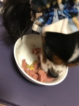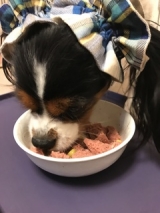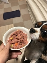 > Butchは低カロリーなんだ! よくそのパッケージや情報を見かける割には近所のお店で売っていないので、前から気になっていたブッチ(Butch)のドッグフードブラックレーベルをモニターさせていただくことに思っていたものより大きいですお歳暮のハムのようですブラックレーベルは、ビーフやラムの赤身肉をメインに使用したブッチのベストセラー商品 全犬種オールステージ対応の無添加ドッグフードです原材料は、世界一基準が厳しいといわれるニュージーランド行政機関の厳格な検査に合格した高品質なヒューマングレード糖類、小麦粉、グルテン、イースト、人工調味料香料など全て無添加なんです!!切ってみると…やっぱりハムの匂い(笑)薄くスライスして、おとうさんのビールのつまみにそのまま出せそうです(内緒)専用キャップをすれば、そのまま冷蔵庫に立てておけます(生活が垣間見えちゃってすみません)小さくなるとこんな可愛い感じになります手作りご飯を全否定していなところも、なかなか素敵なのですが(毎日バランスのとれた手作り食ならそのワンちゃんは幸せですねというスタンス)、私が一番気にいった点は、すっごく低カロリーなこと!だいたい、こういうフードは高カロリーで、あげれる量はほんの少し「美味しいのにこれだけ?」って顔されますこのブッチ「ブラックレーベル」は、100g 121kcalうちのピヨは1日の必要カロリーが約300kcalですから()、ブッチだけなら1食あたり120gもあげられることになりますおやつやガム分をざっくり差っ引いて、100gあげてみます100gごとに線が入ったパッケージなので、計るのも簡単ナイフも、専用のものがなくてもパン用のナイフで問題なくカットできます100gって、こんなにあるんですよ〜美味しいご飯たくさん食べられて嬉しいね、ピヨ手作りはよく食べるし体調もいいのですが、バランスが取れているかは自信がないので、敢えて手作りと市販フードを混ぜたり交互にあげている我が家…ブッチは忙しいときにも便利だしよく食べたし、買っておきたいかな〜別の味も試してみたいので、ブラックを食べ終わったら注文してみたいと思います!一つだけ、、残念な点も一応正直に書いておきますやっぱりコーンはウンにそのまま出てきます(笑)モニターさせていただき、ありがとうございま… 続きを見る