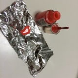 事前に用意したアルミホイルの上に好きなネイルカラーを出し