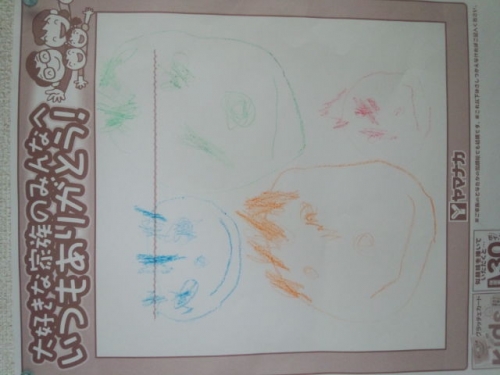 近くのスーパーで母の日に似顔絵を書くという企画で書いてくれました 最初は髪の毛がなかったが書いてもらえました(笑)