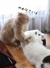 今日も朝からこぜりあいあずきのさかりが終わったので、もう、噛みついてもゆるしてもらえないぶんあずき、もうしばらく、遊んであげてねぶんはやんちゃなので、あずきのペロペロなど、受け入れない 楽しそうに噛みついてしまうからであるだから、もう、あずきはなめようとしない大丈夫、ぶんちゃんは必ず大人になるからね他の人の猫ブログをみていたら、2匹目に受け入れた子猫を先住猫がぺろぺろとなめてあげている動画があがっていた いいなーでも、ぶんちゃんは男の子なんだから、これくらい元気でいいのかも!!ずいぶん大きくなったので、そっと大きさ比較をしてみたまずあずきぶんを投入顔が近づくとじゃれつくので、逆さにしてみたぶんだけ横向きだからちょっと大きく見えちゃうけど、けっこう、大きさ、近似値な気がする知らない人が見たら、きょうだいにもみえるのかなこのアングルは一触即発なのでドキドキするそして、あずきとぶんの違いだが、昨日、紹介したようにあずきは足を伸ばして寝るとき、「足をそろえる」タイプですこんな感じしかしぶんは現時点でこんな風パカッと開いているタイプ下半身だけ見ると上を向いているのか下むいているのかよくわからないじーっとみていたら こんなものが見えてきた無理やりすぎるかなふっ同じエキゾチックショートヘアでも本当に違うもんだと痛感さぁ、庭の草むしりをしよう 【現品モニター】指どおり、するんっ洗い流さないノンシリコントリートメント 続きを見る