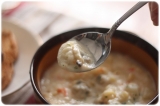 日清フーズの「ママー 弾む生パスタ スープ」のモニターとなりました!レポートしたいと思いますひっえひえのクール便でとうちゃくクラムチャウダー と ミネストローネやったねどっちも大好きコンビニとかで売っている、お湯を入れて食べる奴は何度も食べたことがあるんだけど、冷凍食品は初めてかも中身はこんな感じわが家のレンジは600Wなので、 4分50秒チンしますこのトレイのまま食べられちゃうのもいいところですが、今日はせっかく撮影もするし、娘とそれぞれのスープをちょっとおしゃれにブランチとしていただきますじゃーん 美味しそう娘はクラムチャウダー 私はミネストローネ白身魚のムニエルと、トースト、フルーツヨーグルト、そして、さっぱりめのぶどうジュースと合わせてみましたまずはわたしくしのミネストローネからレポート「おっ」と思ったのはその「歯ごたえ」お湯を入れる奴とちょっとちがう パスタのモチモチ感!「弾む生パスタ」 ってネーミングに納得具材がたっぷりでトマト、玉ねぎ、キャベツ、にんじん、ピーマン、ズッキーニ、セロリ、にんにく、ベーコン、赤いんげん豆がどっちゃり入っていて食べ応え有り!私は、ベーコンがお気に入りトマトソースだから、どんな料理でも合うなと思い、チキンか魚か悩んだけど、魚にしましたブランチだから、量はちょっとだけね娘がチョイスしたのは「クラムチャウダー」こっちは、アサリがゴロンゴロン入っていたのと、当然、パスタはモチモチですが、「シーフード」の味が濃い! 旨みがたっぷり出ていましたこっちにはあさり、マッシュルーム、ポテト、にんじん が入っていて、私はポテトの存在が気に入りましたほれ、あさりちゃん私はゴマパンにブルーベリージャムをのせたけど娘からは「のせないでほしかったスープにつけて食べたかった」とご意見をいただきました すみませんですけっこう量があるので、「ブランチ」と言いつつ、お腹はいっぱいになりましたごちそうさまでした夜、主人が「俺も」というので、夜食にチンしましたチーズが大好きなので、パルメザンをいっぱいかけましたちょっとしたお夜食にもぴったりかもこれって、とろけるチーズとかたっくさん乗せて、トースター焼き目つけて食べてもおいしいかもパンは必須だな美味しゅうございました日清フーズの冷凍食品ファンサイトファンサイト参加中 続きを見る ['close']