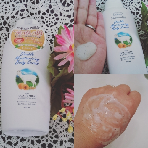 レイヴィーさんのボディスクラブ! 結構たっぷりとスクラブが入っていますが 痛くないです ゴートミルクが入っているためか、スクラブなのに 洗い流した後はツルツルだけれどもしっとりと しています♪ 香りもほんのりミルクっぽい感じで癒されました!