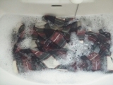 モニプラから、 ニッショク株式会社 さんの オレンジの香り★3万人に愛されているドライ用洗剤「ニッショクドライミニD」♪ を お試しさせていただいています(´∇`) 現品はドライDという名前ですが、 こちらはドライミニD(`ω´) でも、 洗面台で使うぶんには、 一度の使用量がこんな感じ↓ なので、 この春までくらいは楽勝で使えそうヾ(∀)ノ この洗剤、 色々使ってみましたがめちゃくちゃいいんです この謳い文句に全然嘘がないんです ポリエステル主体の ウール混のスカートや、 アクリルにアンゴラとウール混の カーディガンなど、 色々と家庭で洗うにはチャレンジなものを いくつか洗ってみて、 こいつは行けると確信したので、 今回のモニターレポートでは これまでで一番のチャレンジをします(`ω´)! じゃじゃん!!! 一風変わったかたちの、 こちらの変形ジャケット 天下の ヴィヴィアンウエストウッド様の ジャケットでーすヾ(∀)ノ 勿論、ドライ指定 今日はコイツを! じゃばじゃば洗ってやるぜええ(∀)ワヒャヒャヒャヒャヒャヒャ いや、 こちら勿論ユーズドで購入したのですが、 ちょっぴり、 前の人の香水のにおいと、 ウール特有の保管臭が気になって ちょっと水通ししたかったんですよ でもちょっと勇気がなくて… ね! 大切な高価なお洋服持ってる人ならわかるよね! ヴィヴィアンのジャケットなんて 水通す勇気なかなか出ないよね(´;ω;`)…! 例によって例の如く スプーンの4ぶんの1くらいの洗剤で 相変わらず、 すてきなオレンジの良い香りですヾ(∀)ノ てんてろりーんと 洗濯液を作ります そこに… そこに…!!! とう!!! ジャケットを投入(゚д゚)! ぐいぐい沈めてやるぜフゥハハハーハァー(゚д゚)! ※ぐいぐいやってはだめです あくまでも比喩的表現で、 実際には戦々恐々おそるおそる沈めています わーほら、 やっぱり透明だったお水が 黒っぽく濁ってきたよこれ ドライクリーニングを繰り返すと こういうことになるんだよねえ… 黒い黒い(゚д゚) さて、 10分浸けてから、 水を抜き、 ためすすぎをします 水ため いっかいめー にかいめー そして、 三度ためすすぎをして、 水を抜きました …洗濯機で 超ソフト脱水にかけてやるだぜ(゚д゚)! さすがにちょっとヨレったかな? なんという美しい造形なのでしょう(´;ω;`) ヴィヴィアン様大好き(´;ω;`) 手で シワを伸ばし、 かたちを整えつつ、 一日放置して… 自然乾燥が完了したのがこちら!!! どん! なんということでしょう、 生地の色目が 黄ぐすみしてたのが きれーーーいに白く垢抜けましたよ(゚д゚)! ヴィヴィアンが 自宅で洗えるどーーーーー(゚д゚)!!!!! ニッショク株式会社 さんの ラインナップには、 更にこれをソフトに仕上げるものや、 シャツをぱりっと仕上げられるなどの すてきな仕上げ剤もいっぱいあるので、 お洗濯というか 洗剤スキーなわたくし、 最終的には全部買ってしまうなーこれ(人´∀`)...・゚ だって、 ヴィヴィアンが 自宅で 洗えるんですよ クリーニングに出すんだって 戦々恐々、 よほど信頼できる上手で丁寧で 絶対に紛失もなくて ボタンの塗装を剥いだりしないお店にしか 出せないんですからね これが自宅で 自分の手でケアできるだなんて 最高ですよーーーヾ(∀)ノ!!!!! ニッショク株式会社 さんの ドライ用洗剤、ドライD! 是非是非、 みんな、大切なお洋服を洗うのに 使ってみてね!!! ドライクリーニングって高価なうえに 黒い汚れが溜まりますし、 汗や皮脂汚れが落ちません 自宅で自分で水通しできるって 最高だよー(人´∀`)...・゚ ヴィヴィアンのジャケットで 人身御供になってみたどーヾ(∀)ノ♪ ニッショク株式会社 ニッショクオンラインファンサイト参加中 続きを見る ['close']