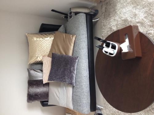 一日中、ゆっくり座ってその日の 献立を考える私の指定席 大好きなクッションに囲まれて 何時間でもいられる、お気に入りの場所