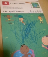 先日めでたく4歳になったごっさんこの夏、もらったくもんのドリルを思い付いた時にやっていたら、だいぶ書く能力が上達したこちらは家族の絵おひげのがお父さん小さい丸が双子の弟と友達のHちゃん←家族!?そんでもって「お母さんはどれ?」と聞いたところ「忘れてた!」と驚愕の答え友達以下のお母さんの立場っていったい左下にある丸は誰なのよ一方1歳の双子のほうは、グジャグジャ書きでもオッケーなドリルだったんだけどなかなか集中してくれないベビーコロールクレヨンを積み上げたり壊したりする方が楽しいみたい後は主にできたねシールをはりまくる全然できてないのに机やら床やらに次々シールをはるくもんのファーストステップドリルにはシールを貼ってみようというシリーズもあるので今度試してみたいなファーストステップドリルシールはってみよう たのしいどうぶつえん価格:583円(税込、送料別)本屋ではなかなかじっくり探せないけどネットならゆっくりさがせるからいいよねくもん出版 fansiteファンサイト参加中 続きを見る ['close']