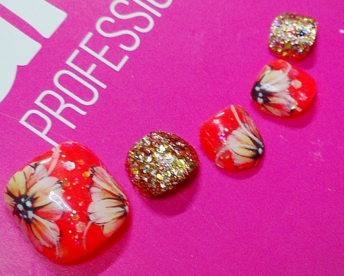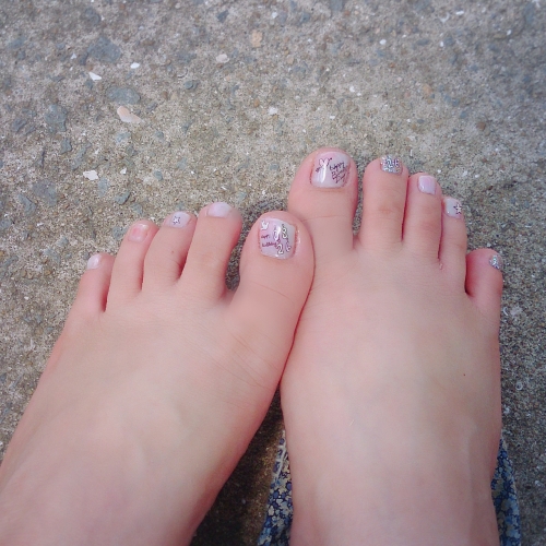 夏だからこそギラギラしたフットネイルにしたくて全部の指にラメをのせました! 手書きのお花が気に入ってます