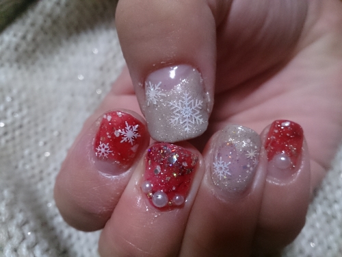 クリスマスにきらびやかに彩られた街に降る雪 雪に混ざって星の欠片もふってくるような あなたといると全てがキラキラして見えるの 今年も一緒に過ごしてくれてありがとう そんな気持ちを伝えれるような、少し大人なクリスマスネイルにしてみました 薬指のくりぬきハートがポイントです