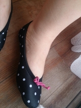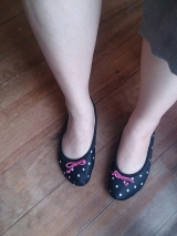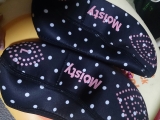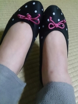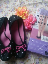 夢展望ファンサイト参加中久しぶりに夢展望さんのモニター当選しましたーわーい↓こちらの商品です[お部屋で履いて美かかとメイク♪ モイスティトゥシューズ /1,680円+税たまーに10名様とかいただくのすっごい嬉しい100名様でもなんでも嬉しいけどねっカラーはブラックドットとピンクの2色展開だったので私はブラックドットを選びました届いたのがこちらご覧の通りかなりコンパクトなので折りたたんで持ち歩けますそして内側は肌に優しいパイル生地が使用されているのですがかかと側にはプロテクターが内臓されているそうでよく見たら確かにセンターくらいに縫い目がある箱にも軽く商品の説明が中身のアップ柔らかそうサイズはフリーということで220cmから245cmまで対応しているそうですみずちさん245cmだけど甲高幅広だからちょっとびくびくしつつ柔らかいゴム素材を使用しているということなのできっとはいるだろうとはいてみました私の足の形が四角いので可愛さをいかしきれてませんがいい感じ何より暖かい横からだとこんな分厚い靴下と靴のあいのこみたいな裏にはちゃんとすべりどめがついていますフローリングでも快適廊下歩いたらちょっと汚れちゃったけど着用した足の裏うん、可愛い(たたみのうえではいてるけど廊下に出る前のお試しばきであってほこりつけたまま畳にあがったりはしてないからね!笑)夢展望さんありがとうございましたこの冬いっぱいはくぜー! 続きを見る ['close']