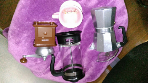 豆を頂いてから集めだしたコーヒーアイテムです!実はコーヒー用のポットはまだ持ってなくて、毎回お玉でお湯入れてる情けなさ、、、、是非今回のコーヒーポット、ためさせてください!よろしくお願いしますゥ!